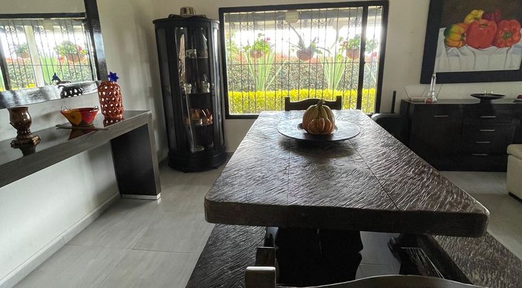 FINCA “ CASA KAMAEL” A 3 km de la autopista Medellín - Bogota, en vereda colorado del municipio de Guarne. Por el retorno 10 entre Guarne y san Vicente. Entra por vereda Chaparral, parqueadero para 8 carros, Techo: de madera con cubierta de cemento tipo tapia, además tiene techo que recubre los pasillos externos de la casa. Finca con Porton de hierro forjado y madera, cercada por muros resanados y pintados en el 50% de la propiedad , el resto tiene alambrado y estacas de cemento y plantas de Eugenio que aíslan la propiedad de la visión externa vigilancia : Camaras de seguridad en el interior de la casa y exterior 4 en total y alarma, está inscrita en la red de seguridad de alarmar Si tiene zonas comunes jardines, asador al lado de la casa . Toda la casa tiene rejas de hierro incluso en puerta principal. Tiene en la entrada de la casa una fuente de agua decorativa . Chimenea en la sala de la casa Agua de acueducto veredal. Sistema de gas en cocinas, Calentador de agua a gas.