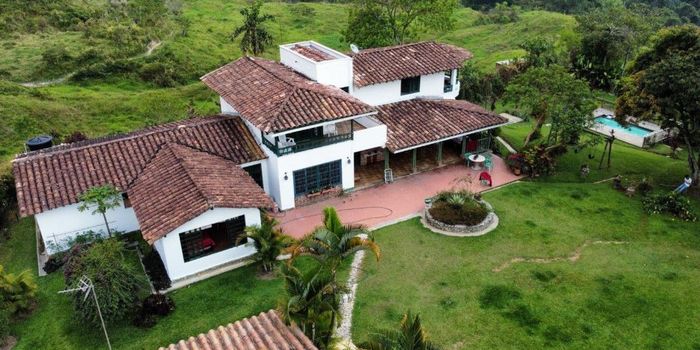 FC-811 Amagá Lotes 8,917 Mtrs - son 2 lotes así: lote 1: 5,730 Mtrs - Lote 2: 3,187 Mtrs, área construida 600 mtrs, hermosa casa principal, 6 alcobas, 5 baños, amplia cocina, 2 niveles, pisos en tableta de gres, piscina, jardines, topografía plana, casa mayordomo