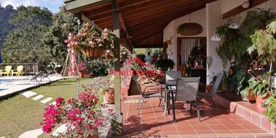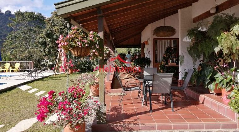 Lote 18.280M2 , 66M2 casa de mayordomo 200M2 en casa principal, sala, comedor, comedor auxiliar, 4 alcobas, 2 baños, cocina integral, piso en gress, terraza, parqueadero múltiple, piscina, gallinero, criadero de peces, cancha de baloncesto, agua EPM y agua propia. Topografía inclinada.