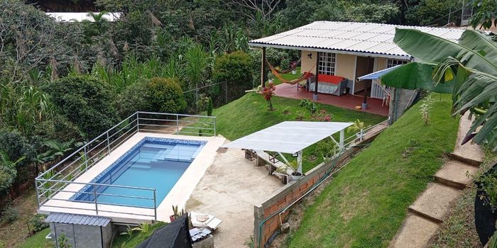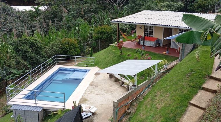 OPORTUNIDAD SE VENDE CASA CAMPESTRE CON PISCINA PROPIA EN LA REFORMA 1409 METROS ESCRITURA PROINDIVISO 40 PREDIOS Una casa prefabricada de 6.50 X 9 metros 3 habitaciones 2 baños Sala comedor PISCINA Camaras internet Luz-agua Vista a cali Biodiversidad de animales Todo encerrado en MALLA Clima cálido - frio de noche Parqueadero tres carros con proyección de ampliación Zona verde con plantas frutales en siembra Via la REFORMA todo tiene huellas Predial 500000 año Agua veredal tratada 70000 mensual Energia 50000 mensual