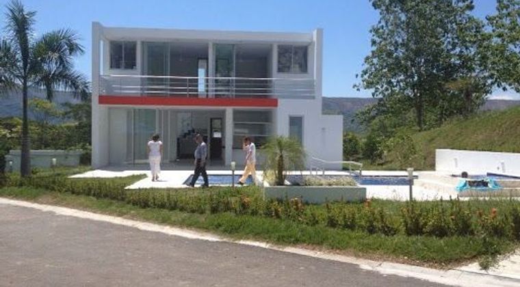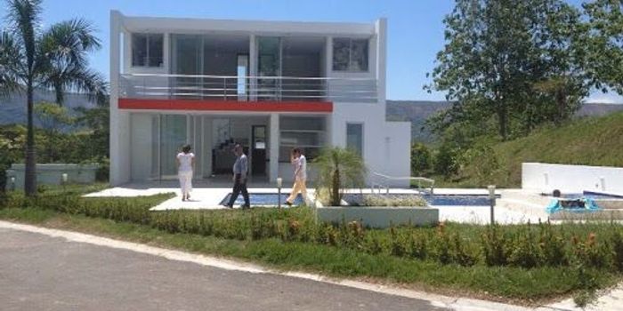 Casa de dos pisos dos parqueaderos cubiertos y dos descubiertos, área piscina 97 metros , cerca a la zona ecológica del conjunto. Propiedad en Carmen de Apicalá Tolima, amplias zonas de parqueo y bellos jardines