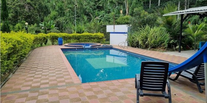 ? Venta de Finca en Chinchiná, Caldas | Casa Campestre en Venta ¡Haz realidad tu sueño de vida campestre con esta espectacular finca en la vereda La Estrella, Chinchiná! Ideal para quienes buscan tranquilidad y comodidad en un entorno natural. La propiedad cuenta con una amplia casa de 3 habitaciones y 4 baños, con sala, comedor y una cocina integral. Disfruta de espacios adicionales como una terraza, piscina, jacuzzi, bar, y zona BBQ. Además, incluye un gimnasio y un cuarto de taller para tus proyectos. Características Destacadas: Área Privada: 4000 m² Garaje: 8 Panel Solar Gallinero y 2 Marraneras Cerca a una Quebrada Equipado con puerta principal eléctrica y excelente iluminación, este lugar ofrece una mezcla perfecta de lujo y naturaleza. Ubicado en una zona segura con fácil acceso a transporte público. ¡Contáctanos para más detalles y para agendar una visita!