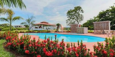 Hermoso complejo turístico en Guamal, ideal para proyecto de inversión, cuenta con 3 cabañas independientes con jacuzzi acabados de lujo, dos con capacidad para 3 personas cada una y una familliar con capacidad de 10px, ambientes perfectos para la relajación, además cuenta con dos Piscinas, cuatro baños comunales, amplias zonas verdes y zonas de juego y relajación, zona social para diversión un bar con temática Mexicana cuidadosamente diseñada amoblados de lujo perfectos para compartir, cuenta con apartamento independiente para administrador, se vende totalmente amoblado y listo para operar, a 5 minutos de la vereda nacional, cerca al pozo petrolero lorito 2, excelentes vecinos proyectos urbanísticos.