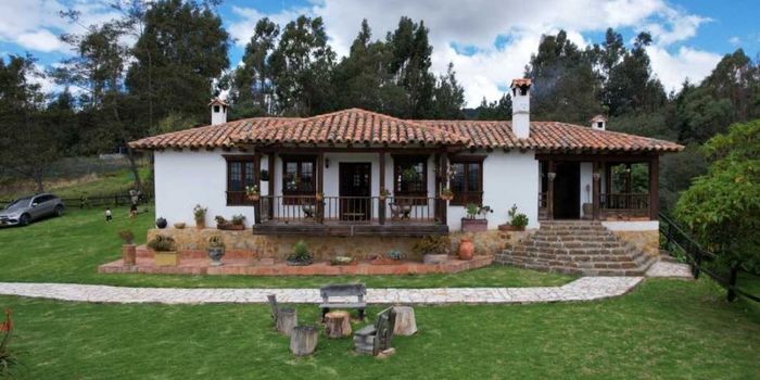 En el municipio de Fuquené Cundinamarca, a sólo 15 minutos de Ubate, en la vereda de Nemogá Alto encontramos esta hacienda colonial de 1865, totalmente restaurada y amoblada acorde el estilo del siglo XIX. Su ubicación permite disfrutar una vista panorámica de las montañas que rodean el valle de San Diego de Ubaté. La casa con sus 350 mts2 permite transportarse en el tiempo, ofreciendo toda la comodidad y tranquilidad que se espera de una lugar privilegiado como el que ofrece La Hacienda La Carlota. Cuenta con 5 habitaciones, ( dos suites,) tres baños. Patio central con fuente de piedra y terraza balcón. La cocina aún conserva la estufa de leña y las comodidades para disfrutar el arte de cocinar con amigos y en familia. Chimeneas en sala y comedor y alcoba principal que dan un cálido ambiente al lugar. Esta Hacienda fue restaurada hace 10 años meticulosamente por sus propietarios y se vende totalmente amoblada y equipada. Tiene en terreno de 5.5 fanegadas en los que también encontramos la casa de los cuidanderos ( vivientes) , bodega, galpón y sembrado de 2.500 matas de fresa en producción. Tiene sistema de riego y 2 reservorios de agua además de 5 tanques de agua y acceso a dos puntos de acueducto veredal. Tiene acceso vial por varios puntos. Se puede llegar desde la carretera principal, a sólo 5 km de la vía entre Ubaté y Chiquinquirá o por vía pavimentada desde Capellania al municipio de Fuquené que etsa a sólo 10 minutos por carretera destapada en muy buen estado.