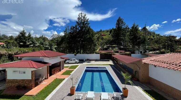 PROPIEDAD CON DOS CONSTRUCCIONES INDEPENDIENTES, esta propiedad tiene una construccion grande de dos niveles con cocina amplia con todas las comodidades, 6 cuartos todos con banos closet o Vestier, terraza, balcon, estudio, una habitacion en el primer nivel, sala y comedor amplios, cuarto de servicio, varios utiles, piscina jaccuzi, bbq espacio para gimnasio, y otra construccion con portada independiente y esta con sala comedor, cocina, zona de ropas, 3 habitaciones, dos banos, parqueadero, bbq y un util amplio, cercano a la autopista Medellin Bogota y facil acceso a transporte publico.