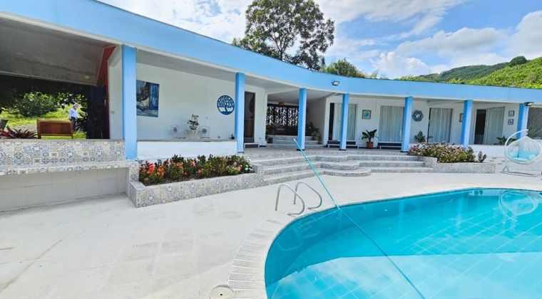 Hermosa finca aguacatera en la Manuela, a 30 minutos de Manizales. Consta de 7 cuadras sembradas en aguacate, algunos árboles frutales y dos viviendas. La principal se desarrolla en un sólo nivel, está recientemente remodelada. Con un área de 300m² distribuidos en piscina, salón, comedor, cocina integral, 4 alcobas, 3 baños y amplios miradores. La segunda vivienda es para el mayordomo, tiene dos alcobas, dos baños, cocina, zona de ropas y también está remodelada. Para entrar a esta propiedad hay que pasar por dos portadas, tiene vecinos que rodean la finca y la seguridad es permanente. Se pagan 80.000 para la seguridad en el acceso y el mantenimiento de la entrada. ¡Contáctanos, ********** es un gusto atenderte!
