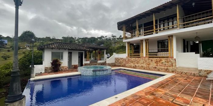Hermosa finca en parcelacion en el km30 lote 5.145mts 373mts construidos, consta de casa principal con parqueadero, cocina, comedor independiente, amplia sala, hall, balcon, baño social, 4 alcobas la principal con vestier y baño, salon de juegos, piscina, jacuzzi, turco, zona humeda, casa de trabajador cuenta con 2 alcobas, cocina, baño, amplia zona social con kiosko, casa de huespedes con dos baños y dos alcobas, juegos para niños, arboles frutales, amplia zona verde, acabados acogedores, agradable clima, iluminada.