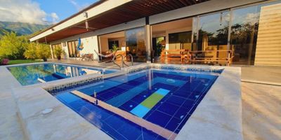 Casa finca para venta en San Jeronimo en vereda la Estancia, sector familiar y tranquilo. Cuenta con un área total de 3010m² aproximadamente de los cuales 310m² son construidos, cuenta con acueducto veredal, energía y tanques de reserva de agua. Consta de sala, comedor, tres alcobas más alcoba de servicio, cuatro baños, closet y vestier, cocina integral, estudio, jardín interior, zona BBQ, piscina, jacuzzi, juegos infantiles, zonas verdes, placa polideportiva, gimnasio, plazoleta, parqueadero cubierto con cuarto útil y parqueadero para visitantes. En unidad cerrada que cuenta con portería 24 horas.