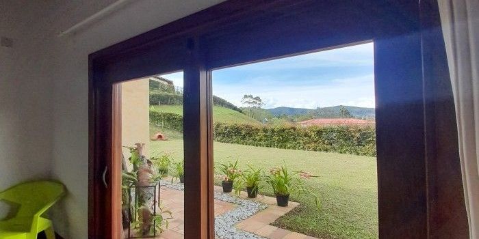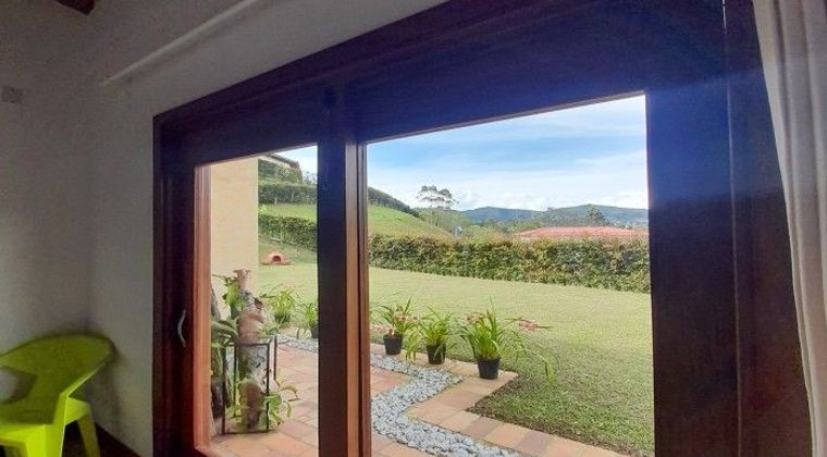 Hermosa finca con 3 cuartos cada uno con baño y vestier completos, baño social, tiene un gran salon comedor, cocina abierta, cochera con espacio para 2 carros, parqueadero con espacio para 5 carros, zonas verdes, cada cuarto tiene su propia puerta corrediza con acceso a zonas verdes, zona de ropas, cuarto util, casa muy iluminada, tiene servicio de luz EPM, aguas veredales con EPM, pipeta de gas de 100, una casa amplia y comoda Predial anual: $980.000