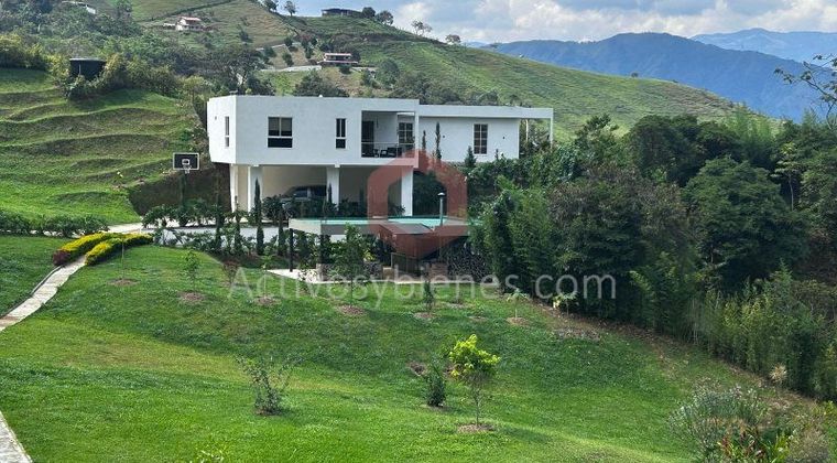 Finca independiente en venta, cuenta con area terreno de 5977m2, lote plano y area construida 434m2, casa con lindos acabados modernos, cuenta con 3 alcobas, 3 baños, estudio, cocina integral abierta con gas por pipeta, sala-comedor, 2 balcones, piso en porcelanato, pisicina de agua natural, parqueadero y util. Ubicada cerca al charco el Guamo en vereda Piedra Gorda, carretera destapada. Vende Activos y Bienes, Inmobiliaria experta en administración, arrendamiento y venta de apartamentos, casas, locales, bodegas y oficinas en el Oriente Antioqueño, Medellín y toda el área Metropolitana. Información sujeta a cambios. Las imágenes de muebles, enseres, decoración y demás elementos son una referencia.
