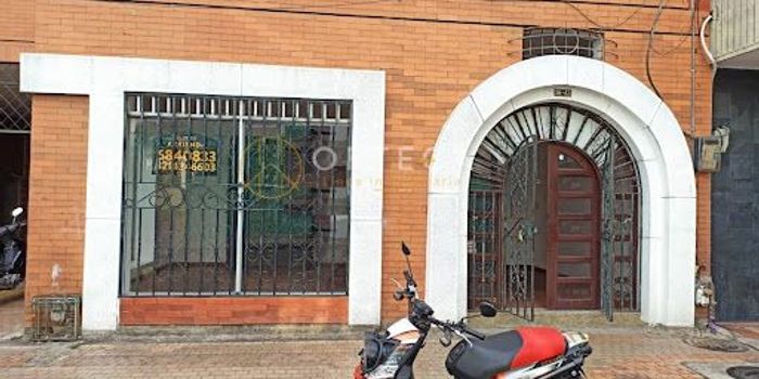 Local esquinero, área 50 m2, cuenta con 2 baños, amplios salones, 2 entradas, piso en tableta roja y cerámica, servicio de agua y luz.