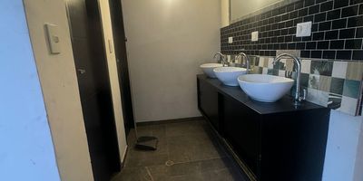 Este local, cuenta con una cocina amplia enchapada, con depósito, la cocina, dos baños para hombre y mujer, con 3 lavamanos, agua, gas, luz, doble entrada, nuevo.