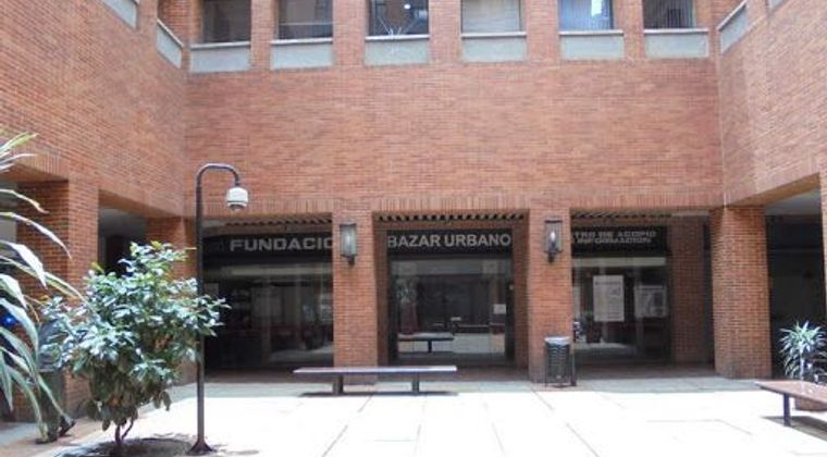 Locales entrada principal de la plazoleta del Parque Central Bavaria, dos niveles, dos baños, pisos alfombra. Ubicado cerca al Parque Nacional, parqueadero público en sótano