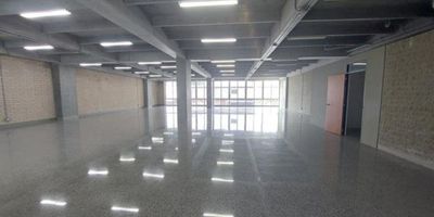 Este local cuenta con un área total de350.6m², en un espacio abierto. 4 baños, 4 parqueaderos, 2 sencillos y uno doble lineal, no cuenta con cuarto útil, no cuenta con ascensores, cocineta sencilla, vigilancia 24/7, circuito cerrado tv, con una altura de 3,20 mtr,capacidad de resistencia del piso es de 350kg x metro cuadrado, capacidad eléctrica de 60kv, espacio muy iluminado, con vista a la calle, ubicado en una zona muy comercial apta para empresas.