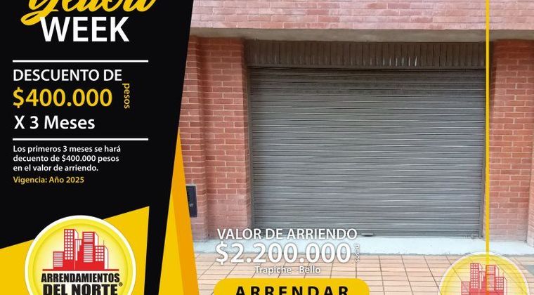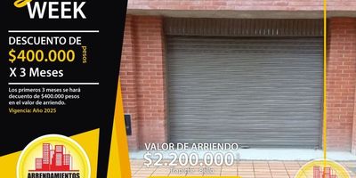 Código: 8040. 1° Piso en edificación de 2 pisos. Acceso al inmueble: Directo a la vía y sendero peatonal. Inmueble por colocación. Canon + IVA. Promoción Yellow Week 2023: Descuento en el valor del canon por $400.000 durante los primeros 3 meses.
