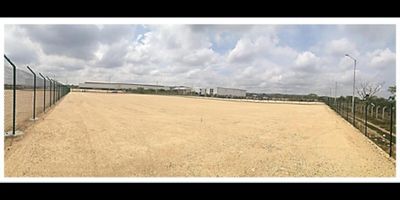 SE ARRIENDA LOTE SOBRE VIA PRINCIPAL ADECUACIÓN Los lotes tienen un relleno compactado con material seleccionado tipo Zahorra en una capa de 40 cms. Tiene una subbase de 30 cms para un total de Relleno de 70 cms. La capacidad portante del suelo mejorado en estas condiciones es de 8 Toneladas por Metro cuadrado. CERRAMIENTO • El cerramiento es en malla eslabonada a una altura de 2 M. con postes en tubería metálica cada 2.5 M. la malla va sobre viga en concreto de 30x30 cms y sobre micropilotes de 50 cms. • Acceso con rampa de concreto reforzado de 20 cms de espesor con una resistencia de 4000 PSI. • Puerta de acceso en tubería Metálica galvanizada de 2” y malla eslabonada galvanizada con recubrimiento en PVC con 9 M de ancho.