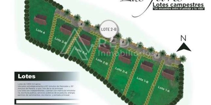 ¡Lotes y estilo de vida! Se Vende Lote ( 2B) en el sector del Lembo en Santa Rosa de Cabal - Risaralda. Los mejores lotes gracias a la ubicación estratégica, seguridad y privacidad, sendero ecológico. Disfruta de un espacio natural con reserva forestal y nacimiento de agua y tranquilo, vista espectacular. Disfruta de los beneficios del ambiente campestre. Ubicados estrategicamente a 40 minutos de Manizales y 20 minutos de Pereira y a solo 1 kilómetro de la vía principal. Los lotes son independientes, cuentan con matricula inmobiliaria, escritura publica, servicios públicos de acueducto, energía y permisos de vertimiento, vía interna y portada principal.