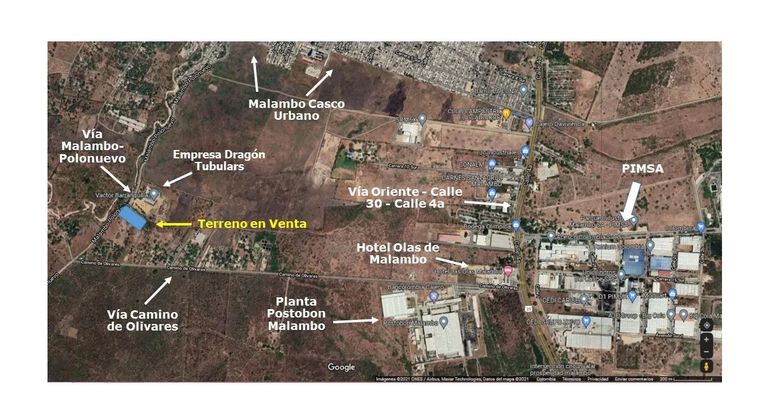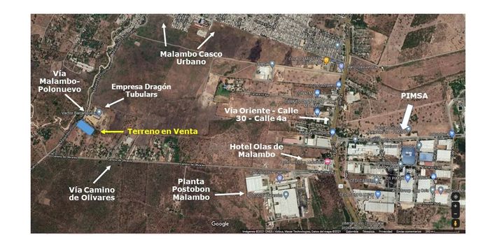 Lote en sector de La Bonga, sin construcciones, terreno plano, cuenta con autorización de Uso de Suelos Industrial, también puede ser de Uso Agrícola, cuenta con servicios de agua y luz sólo debe solicitar su acometida. Por su ubicación estratégica le permitirá llegar rápidamente a La Planta de Postobón de Malambo, P.I.M.S.A, Oikos Malambo Centro Empresarial, Casco Urbano de Malambo, Aeropuerto Ernesto Cortissoz, Dragon Tubulars Sede Malambo, entre otros. Queda tan sólo a 20 minutos de Barranquilla. Acceso para llegar al Lote: Via Oriental, Vía Malambo-Polonuevo, Via Camino de Olivares, Circunvalar de la Prosperidad.