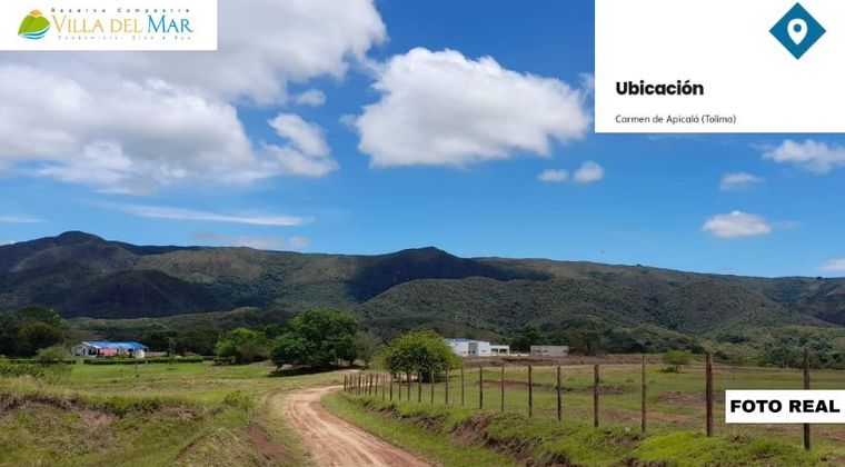 Se vende lote de 308 m2 en el Condominio Reserva Campestre Villa del Mar, en el municipio de Carmen de Apicalá. Cuenta con servicio de vigilancia 24 horas, agua, electricidad. El condominio esta en construcción y contará con ciclovía, golfito, zona de camping y ecoturismo, lago con muelle, parque ecológico, zonas verdes, piscina deportiva, piscina para adultos, piscina infantil, restaurante, bar snack, canchas de futbol, canchas de tenis, oratorio, zona de paintball.