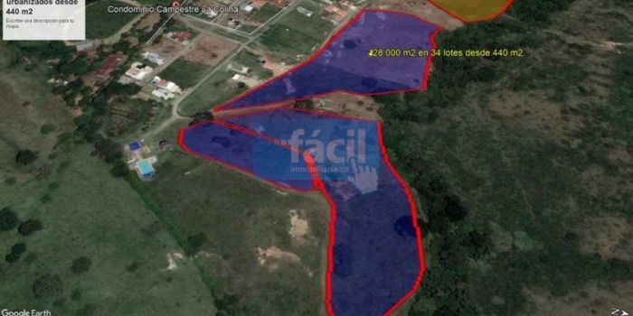 Vendemos terrenos en condominio La Colina 1, suman un área de 28.000 m2 distribuidos en 34 lotes urbanizados (con acueducto, energía y vías en material afirmado) cada lote pequeño cuenta con matricula inmobiliaria y ficha catastral. Excelente oportunidad para inversionistas inmobiliarios. El condominio cuenta con acueducto propio. Zonas comunes (Piscina para adultos y niños, salón social, cancha de voley playa, senderos peatonales, bosques nativos a orilla de rio, porteria 24 horas)