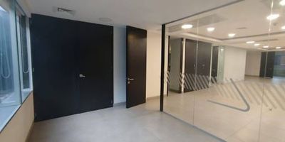 Oficina en moderno edificio de la Milla de Oro, piso completo con excelentes acabados. Cuenta con aire acondicionado, vista garantizada y acceso a espacios comunes como auditorios, salas de reuniones y terrazas. Además, dispone de hotel y variedad de restaurantes. A solo minutos de los centros comerciales Oviedo y Santa Fé. Canon incluye cuota de administración.