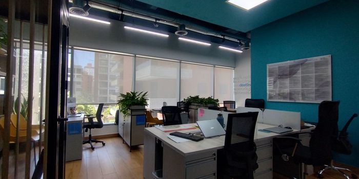 Oficina amoblada en arriendo ubicada en Alto Prado. Cerca a centros comerciales, supermercados, rutas de transporte público, restaurantes, parques, bancos, hoteles. Cuenta con 2 espacios, vista exterior, baños comunales, cocineta, pisos en cerámica, aire central, recepción, cámaras de seguridad, cuarto eléctrico, acondicionado para call center, auditorio en el edificio, zonas verdes, 2 parqueaderos cubiertos, portería y vigilancia 24 horas.