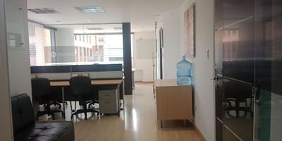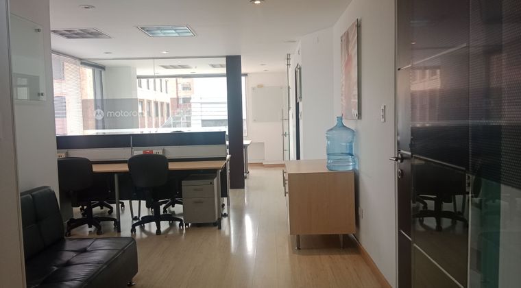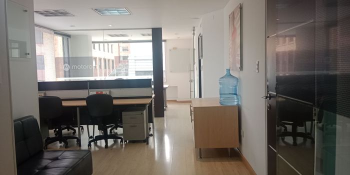 Descripcion Excelente oficina exterior, iluminada AMOBLADA en arriendo, ubicada en edificio de 7 pisos con ascensor, incluye sotano de parqueadero, pisos en madera laminada, cocineta y bano interno, cableado, cuenta con 2 oficinas de juntas y un espacio para 6 puestos de trabajo. El edificio cuenta con recepcion y vigilancia. Muy atractiva por su ubicacion sobre la Cra. 11, cerca al parque de la 93, CL. 94. Cra 13, CC de la 93 Cra. 15. muy cerca de todo lo que necesitas.