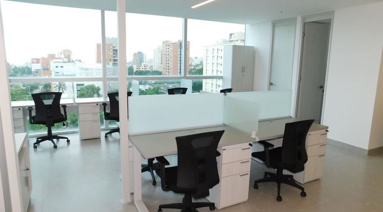 Oficina amoblada disponible en arriendo ubicada al norte de al ciudad de barranquilla en el sector del barrio el poblado, sector comercial en vía principal, edificio empresarial, dispone de un área de 64m2, cuenta con 13 puestos de trabajo, área cerrada para gerencia, espacio para zona de recepción, cocineta, baño interno, el edificio cuenta con salón de juntas, auditorio, cafetería, gym, parqueadero de visitantes y privados, dispone de 3 ascensores por piso, lobby con recepción y control de acceso, muy cerca a entidades financieras, restaurantes, supermercados, transporte publico cercano. 301