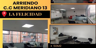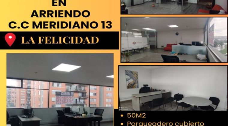 OFICINA COMERCIAL EN ARRIENDO, ubicada en el centro comercial y empresarial Meridiano 13 en la localidad de Fontibón- La felicidad, en 4to piso, cuenta con 50m2 de área, incluye mobiliario completo, zonas comunes, sala de juntas, 3 baterías de baño, ascensor, vista externa, área para mini cafetería interna, parqueadero cubierto, administración incluida en el canon. Esta oficina representa una solución integral para empresas que buscan eficiencia, prestigio y una ubicación estratégica " Para mas información contáctanos!