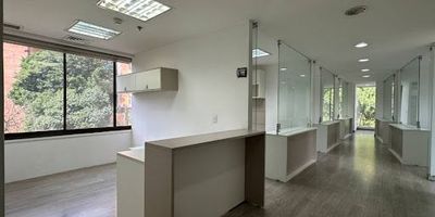 Oficina de 120m, estratégicamente ubicada en la milla de oro, en El Poblado. La propiedad ofrece espacios amplios y versátiles, ideales para adaptar a las necesidades de su negocio. Amplios salones, dos baños y una cocineta.La oficina incluye dos parqueaderos privados, proporcionando comodidad y seguridad. , ofrece un fácil acceso y proximidad a las zonas más importantes del Poblado.