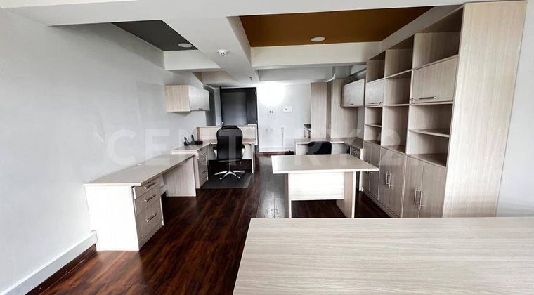 Arriendo acogedora oficina de 30 metros con muebles de madera cocineta espacio para nevera pequeña piso laminado tiene internet banda ancha de 900 gigas en un 5 piso el edificio cuenta con salas de juntas audiovisuales y gimnasio