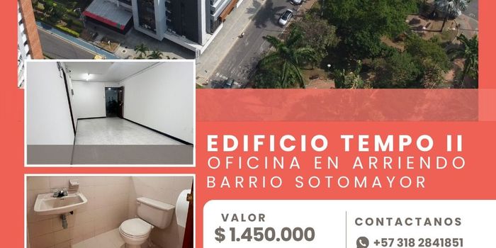 24.0 m2Ubicada en el Edificio Tempo II, esta oficina es perfecta para quienes buscan comodidad y una ubicación estratégica en uno de los sectores más exclusivos de la ciudad. Piso alto, con vista a la Cra 29 Características: * Baño privado * Aire acondicionado * Blackout y persiana * Espacio cómodo y funcional Un espacio ideal para trabajar con tranquilidad, proyectar profesionalismo y estar en una zona clave de negocios.