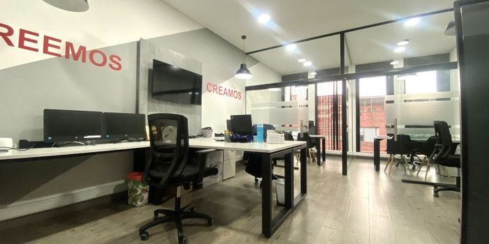 Arriendo oficina en Santa Bárbara de 41m2, ubicada en excelente sector comercial.. Exterior en el piso 2. Excelente iluminación y ventilación gracias a ventanales piso-techo. Cuenta con baño y cocina interior. Espacio amplio y abierto con acabados de alta calidad. Un parqueadero privado. Áreas comunes incluyen lobby de recepción, terraza con comedor, salón de juntas y parqueaderos para visitantes. Fácil movilidad peatonal y vehicular en una zona comercial e institucional. AMOBLADA