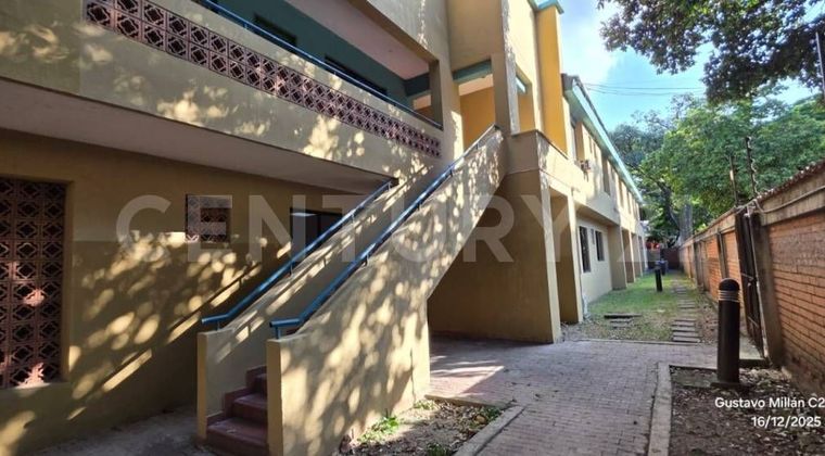Oficinas en Alquiler en Cuarto de Legua Guadalupe en el Sur Central de Cali con Uso Suelo: Oficinas, locales comerciales, hotel y apartahotel, restaurantes, centro de convenciones y salas de conciertos. Área construida 1.180,05 M2. En el pimer Piso: Hall de acceso, auditorio con capacidad de 120 sillas con baños, 4 Oficinas, 1 salón de Juntas, baños, cocineta y 3 bodegas. En segundo Piso: 3 apartamentos con baño y cocineta, terraza, salón dividido para oficinas y un salón de Juntas con baño social Canon veinte millones más IVA reintegro mensual promedio en serviicos públicos de diez millones. 42 Parqueaderos y 1 cobertizo. Canon más IVA. Reintegro mensual promedio $10 millones por servicios públicos SSPP acueducto, alcantarillado y energía. Mínimo contrato 1 año máximo 5 años. No puede ser utilizado para actividades masivas ejemplos: sala de eventos o iglesias. Por temas de no perturbar la movilidad o la tranquilidad de los residentes del sector