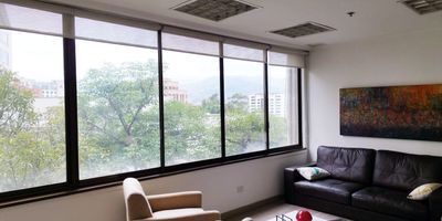 Oficina amoblado en arriendo y venta en edificio empresarial con facil acceso desde via principal y cercano a multiples servicios complementarios de centro comercial. Rutas de transporte publico. Cuenta con piso en madera, 8 espacios, baños, cocineta, cableado de red, techo cielo raso, aire acondicionado central, area de recepcion y parqueaderos cubiertos. Auditorio, Vigilancia 24 horas, citofonia, circuito cerrado de tv y alarma. *Inmuebles sujetos a verificación de disponibilidad.*