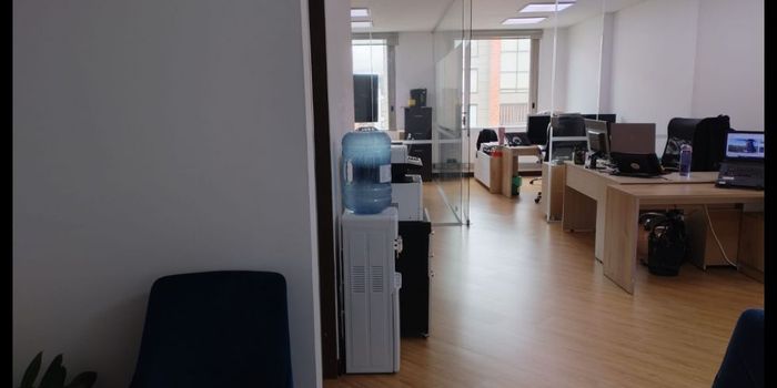 Arrendamos hermosa oficina de 54 m2 en la importante zona de Chico central, en edificio inteligente en un sexto piso. La oficina tiene dos compartimentos con division en vidrio de seguridad y ventanales de 3/4 hacia la calle, luces LED, pisos en madera laminada, cocineta adecuada y baño privado para gerencia, como tambien bateria de baños para hombre y mujer en cada piso. Aire acondicionado, sistema de deteccion de incendios. El edificio cuenta con 5 ascensores, 3 salones para reuniones de 15, 20 y 40 personas, auditorio para 80 personas y dotado tecnologicamente, Helipuerto, parqueaderos públicos y facilidad para uso del transmilenio y rutas del SIPT. Zona de comercio general con predominio en salud, tiendas de cadena y entidades bancarias. Es una gran oportunidad para establecer tu oficina en un lugar privilegiado y con altos beneficios. HAZ TU CITA YA! COD. 917-0018