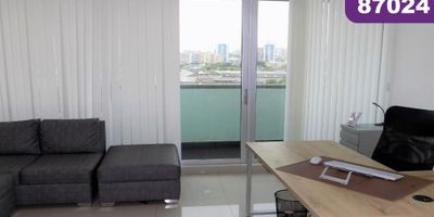 Oficina en venta, ubicada en Centro Empresarial sobre una de las Vías comerciales e industriales más importantes de la Ciudad de Barranquilla como lo es la Via 40, de fácil acceso y transporte, cerca de bancos, ferreterías industriales, cajas de compensación, parques industriales y complejos empresariales. La oficina cuenta con 57 m2, modernos acabados, lámparas, pisos de porcelanato, 1 baño, cocineta, espacio tipo balcón con excelente vista y donde se coloca la máquina del aire, 1 garaje privado y 1 deposito. El complejo tiene lobby, amplios parqueaderos, ascensores, planta eléctrica, cafeterías, locales comerciales, bodegas y vigilancia privada con circuito cerrado de tv.