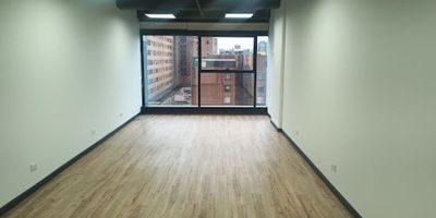Oficina de 37 mts, consta de un espacio abierto para zona de trabajo, pisos en madera laminada. El edificio cuenta con servicios de baños en cada piso, ascensor, circuito cerrado de T, recepción con vigilancia veinticuatro horas, sala de reuniones, terraza con zona de cafetería, parqueaderos públicos.-10673