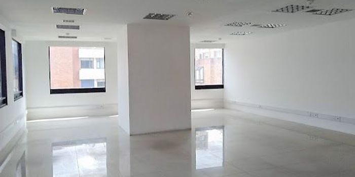 Oficina de 91 mts, dos baños, vista exterior, cuenta con una cocineta, seguridad 24-7, dos parqueaderos cubiertos, bahía de parqueo, cerca de Pepe Ganga, carrera novena, Carulla.