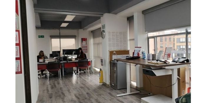 Espectacular oficina en el Barrio el Chico. Empresarial en piso 9 con un área de 112 m2. Consiste en una torre de 9 pisos. Oficina exterior con área abierta, moderna y con excelente iluminación, cuenta con baño privado, cafetería, dos parqueaderos y un deposito. El Edificio posee un diseño arquitectónico moderno con ladrillo a la vista y cuenta con dos ascensores, Escaleras de emergencia, lobby, sistema de molinetes, planta eléctrica suplencia total, vigilancia las 24 horas del día, batería de baños por piso, sala de juntas y operación 24/7. A tres cuadras de la Autopista y la Estación de Transmilenio, cerca de Universidades, comercio y servicios.