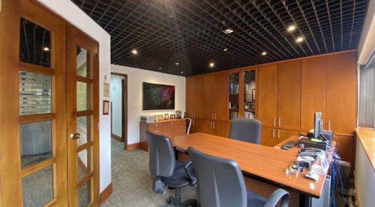OFICINA REMODELADA EN VENTA UBICADA EN EL NOGAL, sobre la Cra 7, y vías principales de fácil acceso, transporte publico, entidades financieras, restaurantes, etc. en su interior encontrará un área de 124 m2, 3 parqueaderos independientes, amplios espacios, excelentes acabados. y buena iluminación natural. cuenta con espacio para una cafetería, 2 baños, zona de archivo, sala de juntas y tiene cableado estructurado. sector y edificio con óptimas condiciones de seguridad.