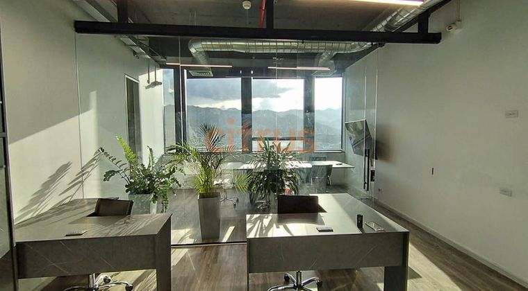 Oficina en arriendo en el poblado, piso alto, excelente vista, la oficina tiene muy buenos acabados y se renta amoblada, como se ve en las fotos, adicional la oficina cuenta con aire acondicionado, baño, cocineta, persianas, 1 parqueadero privado, ubicada en edificio con auditorio, amplias zonas comunes, y de esparcimiento, restaurantes en el primer piso, transporte publico cercano, el canon de arrendamiento es más Iva.