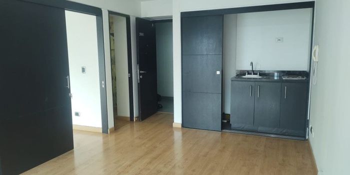 Excelente oficina de 40 metros cuadrados ubicada en el piso veinte, con vista exterior y buena iluminación natural. cuenta con una división que genera dos espacios separados, dos baños y una cocineta. los pisos son de madera, lo que le da un aspecto cálido y acogedor. El edificio en el que se encuentra la oficina cuenta con un auditorio disponible para reuniones y eventos. sin embargo, no cuenta con garaje propio. la ubicación de la oficina es cercana a la estación de la calle 26, lo que facilita el acceso y la movilidad hacia y desde el lugar. en resumen, esta oficina ofrece un excelente espacio para trabajar, con todas las comodidades necesarias y una ubicación conveniente.