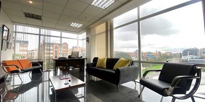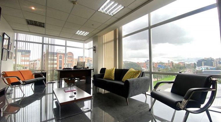 Oficina en venta en Santa Bárbara de 36m2, ubicada sobre la Av 116. Exterior, esquinera en el piso 4, con vista panorámica. Excelente iluminación y ventilación gracias a ventanales piso-techo. Cuenta con baño y cocina interior. Espacio amplio y abierto con acabados de alta calidad. Un parqueadero privado. Áreas comunes incluyen lobby de recepción, terraza con comedor, salón de juntas y parqueaderos para visitantes. Fácil movilidad peatonal y vehicular en una zona comercial e institucional.