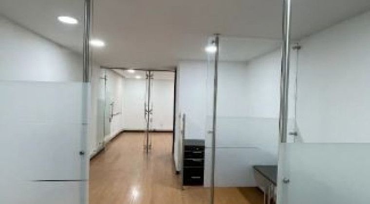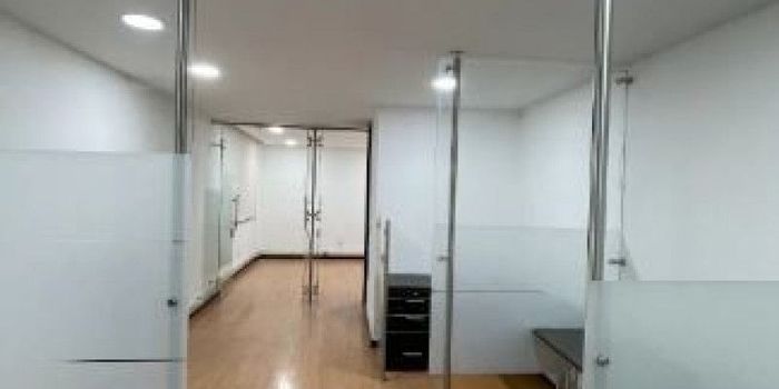 Oficina de 33 mts, consta de un espacio abierto con divisiones para tres puestos de trabajo y oficinas de gerentes, un baño, pisos, en madera laminada. El edificio cuenta con salón de juntas o eventos, terraza equipada para almorzar, recepción y vigilancia 247.-11110