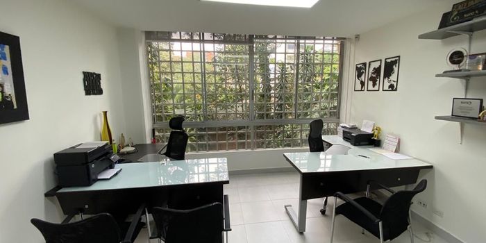 Oficina en AMOBLADA en venta ubicada cerca a centros comerciales, restaurantes, supermercados, rutas de transporte público, parques y servicios complementarios del sector. Piso en porcelanato, 4 espacios, 2 baños, cocineta, cableado de red, techo cielo raso, aire acondicionado central y 4 parqueaderos cubiertos en exterior(2) e interior(2) Cuenta con vigilancia y portería 12 horas, circuito cerrado de TV, bahía de parqueo, baños comunales y parking visitantes sin costo.inmuebles sujetos a verificacion de disponibilidad