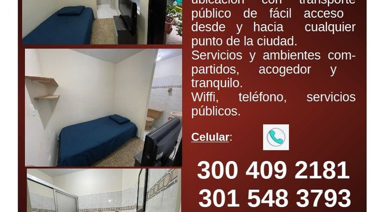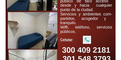 Habitación persona que trabaje y estudie preferiblemente, ofrezco habitación pequeña amoblada para persona sola, perfecta para descanzo y ambiente silencioso y tranquilo. Cuenta con cama sencilla, closets y mesa de noche, baño externo compartido con otra habitación. La habitación esta disponible para descansar, no es permitido visitas de ninguna indole, no se permite fumar al interior de la casa, cuenta con patio de ropa, cocina, ambiente familiar. Agenda cita, se pide referencias y codeudor.