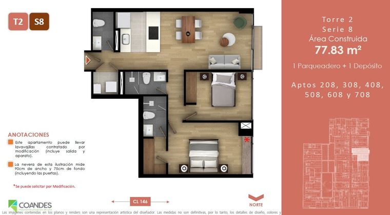 Ubicado al norte de Bogotá, entre las carreras 9na y 7ma en el barrio Belmira (Cedritos) se encuentra Tei 146, un proyecto pensado para aquellos que disfrutan de vivir en zonas residenciales cercanas a todo, avenidas principales (cra 9, cl 147, cra 7) comercio, parques, colegios, restaurantes, ciclovía y transporte público.