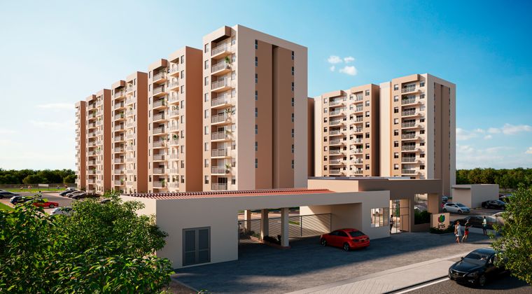 Proyecto de Vivienda de Interés Social (VIS) más exclusivo de la región, 320 apartamentos en 8 torres de 10 pisos de 2 y 3 alcobas, zona de ropas independiente, dos baños, sala comedor y balcón. Relación parqueaderos 1 a 1 asignado y zonas sociales para vivir en modo vacaciones.