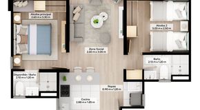 Sobre PlanosDesde: $201,100,000 Mirla soacha, comuna 1 compartir, salitre sur41.8 m2Habit. 2Baños 2Garaje 0
